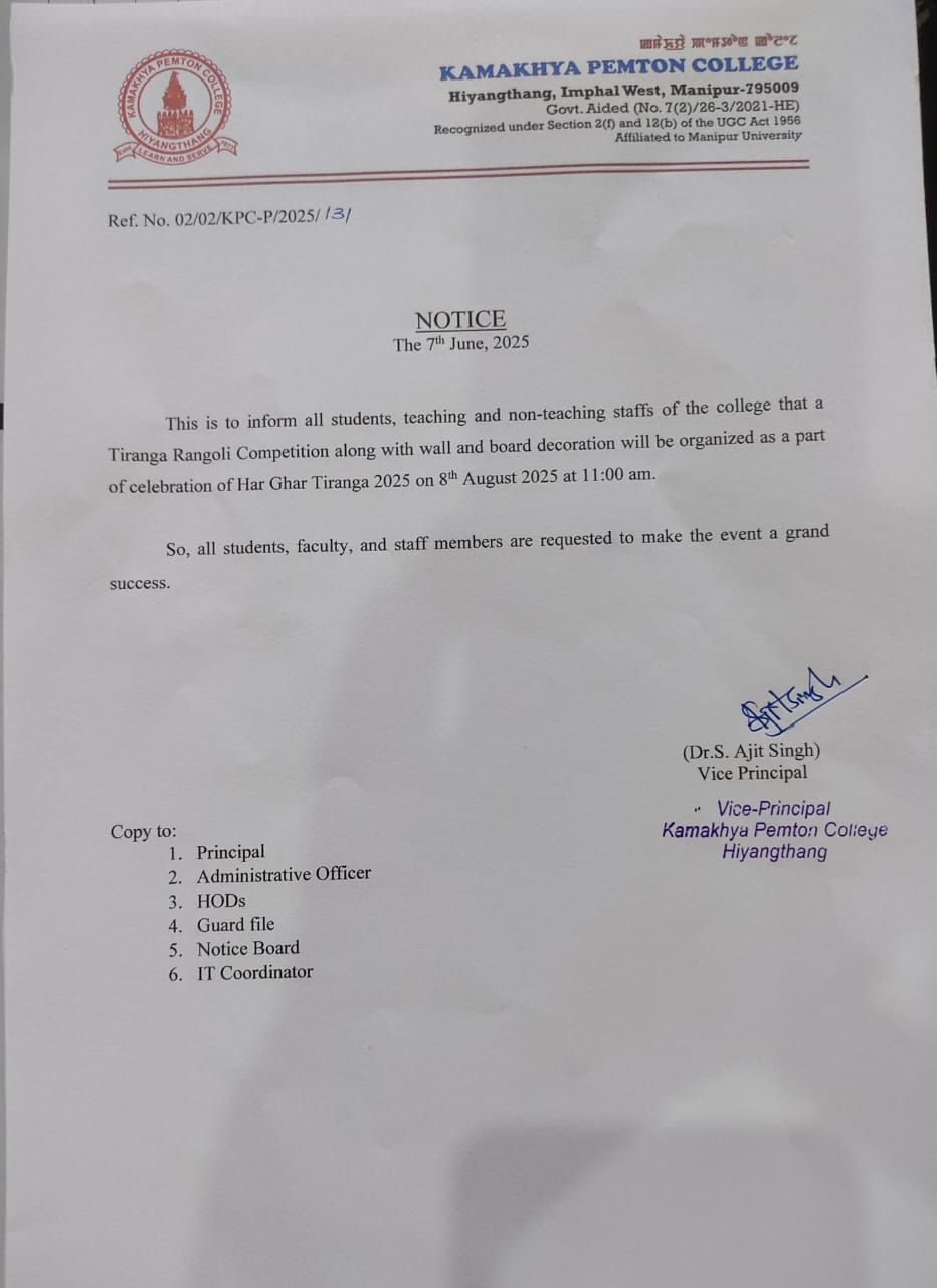 Notice: Har Ghar Tiranga Competition 2025 / News / By Webmaster August 7, 2025 Election Notice 2026 January 16, 2026 Read More » Notice: One Day Lecture Cum Interaction Programme | Role of Language in NEP 2020 December 18, 2025 Read More » Notice: Mathematics Quiz Competition 2025 December 12, 2025 Read More » Notice: FYUP 2025 August 13, 2025 Read More » Notice: Patriot Day Observation 2025 August 11, 2025 Read More » Notice: One Day Lecture Cum Interaction Programme August 9, 2025 Read More » Notice: Directorate Team Inspection 2025 August 8, 2025 Read More » Notice: Har Ghar Tiranga Campaign 2025 August 8, 2025 Read More » Notice: Har Ghar Tiranga Competition 2025 August 7, 2025 Read More » Notice: Recruitment for CSR-funded Project July 3, 2025 Read More »